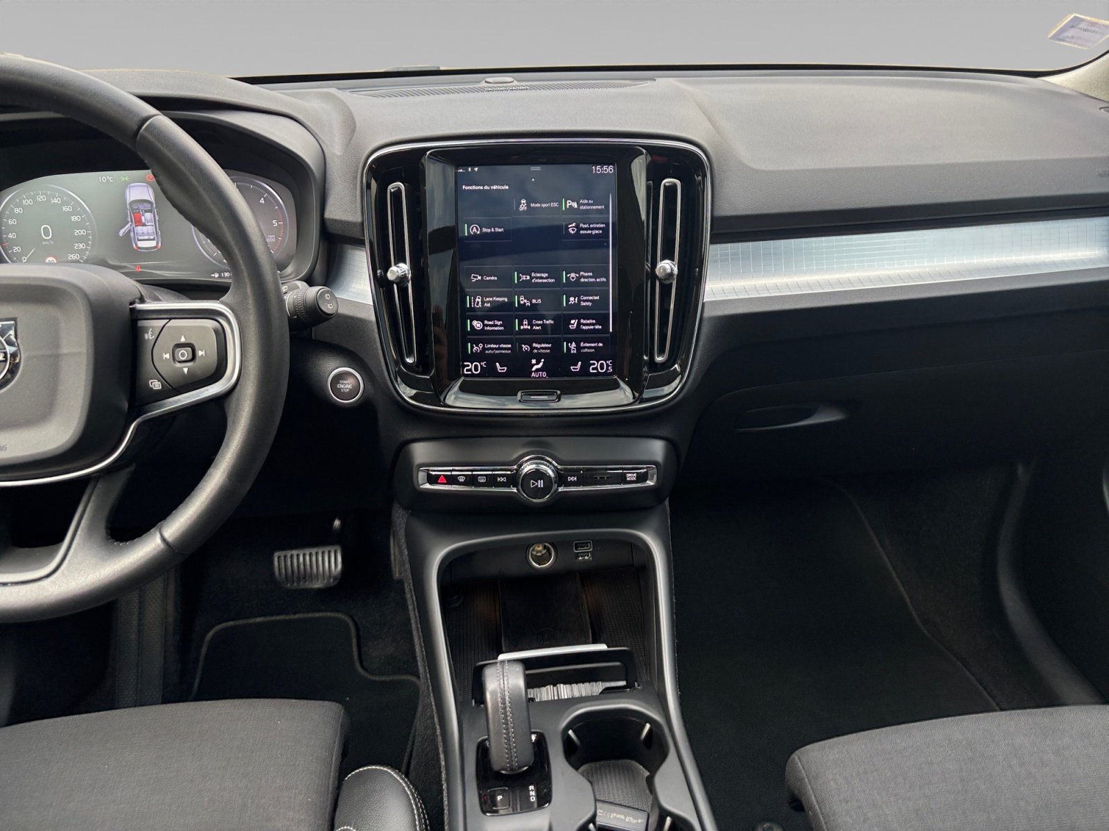 Conduite Semi-Autonome (Intellisafe Pro) : Ce XC40 est équipé du régulateur de vitesse adaptatif et de la conduite autonome partielle. Le systÚme surveille vos angles morts et vous assiste lors des sorties de stationnement grùce au radar de recul.
