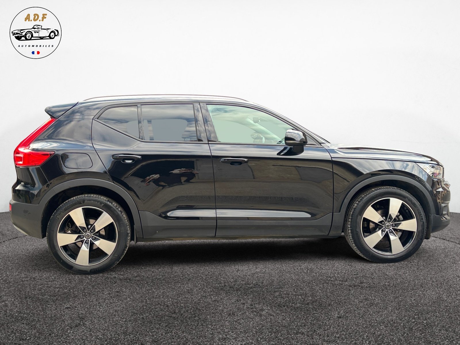 DÚs le premier regard, ce Volvo XC40 impose sa personnalité dans sa robe Onyx Black métallisée. Sa silhouette musclée est magnifiée par des jantes alliage 19 pouces à 5 branches Noir / Diamant, une option qui renforce son assise visuelle. La célÚbre signature lumineuse en « Marteau de Thor » des projecteurs LED directionnels et actifs vient parfaire ce look à la fois moderne et indémodable.
